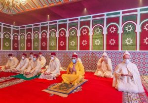أمير المؤمنين الملك محمد السادس، صباح اليوم الخميس 13 ماي الجاري، يؤدي صلاة عيد الفطر، مرفوقا بولي العهد صاحب السمو الملكي الأمير مولاي الحسن، وبصاحب السمو الملكي الأمير مولاي رشيد. وحرص الملك، إلا أن يؤدي هذه الصلاة، كسائر أفراد شعبه الوفي، دون خطبة، وذلك في التزام بالتدابير الوقائية لمواجهة جائحة فيروس كورونا.