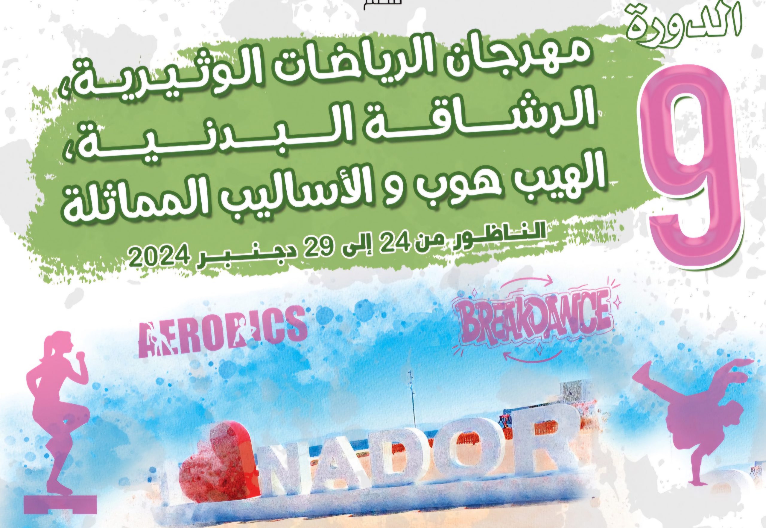 الناظور – تحتضن مدينة الناظور النسخة التاسعـة من مهرجـــان الرياضــات الوثيــرية والرشـاقة البدنيـــة الهيـب هـوب والأساليـب المماثلـة، بمدينة الناظـــــور خلال الفتـرة الممتدة من 24 إلى 29 دجنبــر 2024.